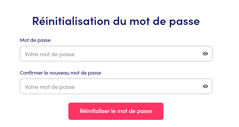 Renseignez votre nouveau mot de passe et cliquez sur l’onglet « Réinitialiser le mot de passe ».